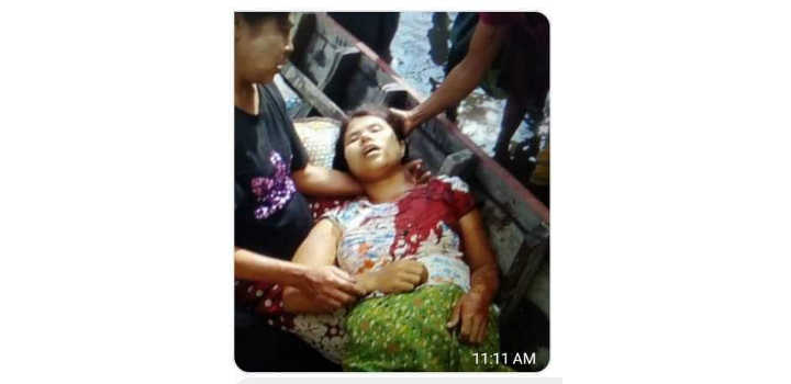 The incident took place on Sunday as she was returning home with her husband by a small machine boat after selling fishes. The victim was identified as Daw U Khin Than, wife of U Maung Hla Aye from Wet Ruu village under Meabon township in central Arakan.
