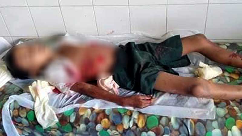 The nine-year old child identified as Maung Kyaw Min Myat wearing his school uniform was killed by gunfire near a small creek in Paik Thel Ward, Kyauktaw town while returning home from a class.