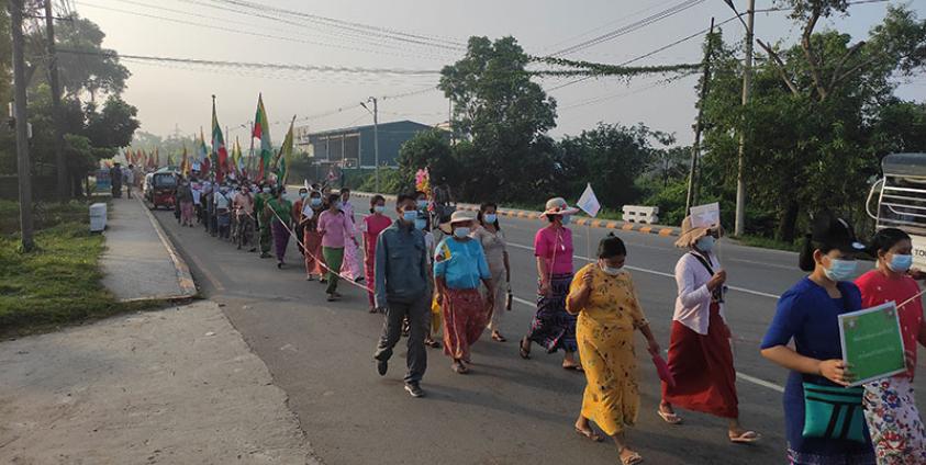 Pro-military rallies were also held in the towns of Thandwe, Kyaukphyu, Taungup, Maungdaw, Ann and Rathedaung, reportedly organised by families of military personnel and veterans.