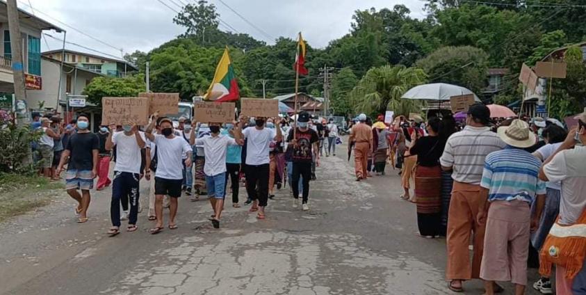 The EAO detained Sai San Kham Aik, 50, and three others from the Shweli River Valley on May 31. After releasing three people, SSPP informed Sai San Kham Aik’s family he died from high blood pressure on June 26. When the armed group refused to return his body, the family organised a protest in front of its office in Namkham on June 27 and the following day in the town’s centre.