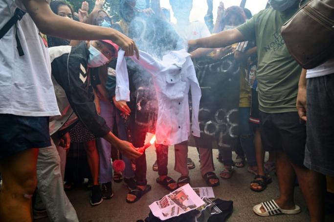 Protesters in coup-hit Myanmar marked the birthday of junta leader Min Aung Hlaing Saturday by burning his portrait and staging fake funerals.