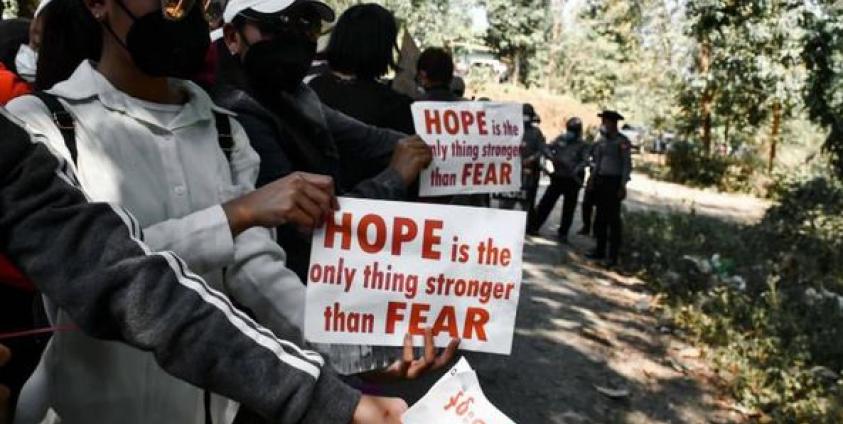 “There will be protests until the dictatorship is overthrown and [democratically elected] leaders are released. We have to continue protests until detained students and politicians are released and despots are doomed,” said Ma Khin Htate Htar Hlaing.
