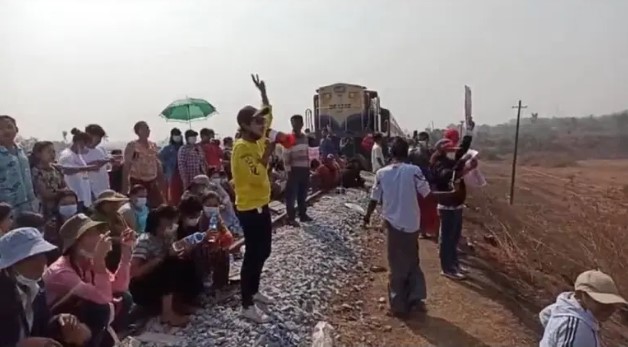 Protestors blocked Mawlamyine-Yangon passenger train