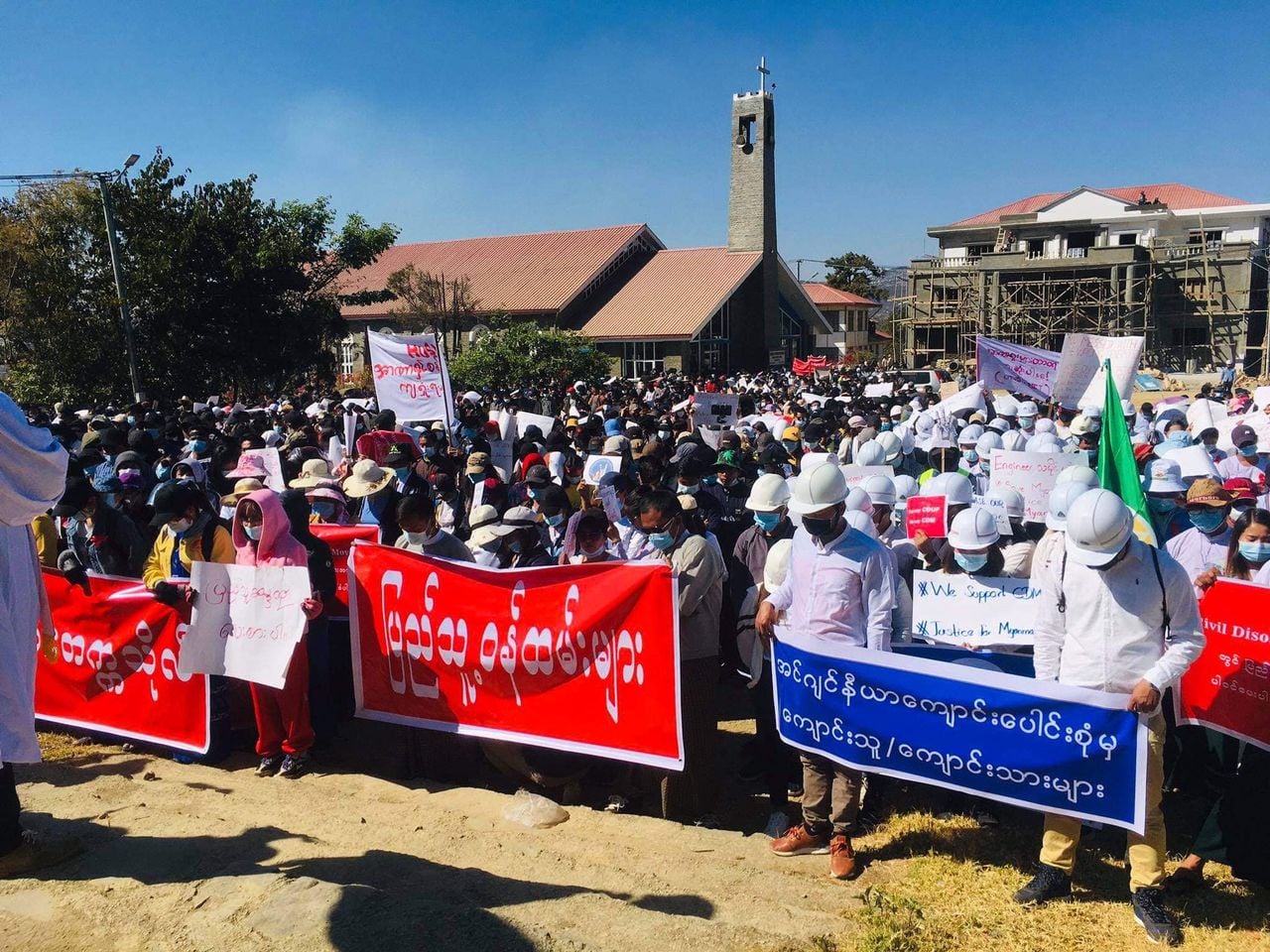 “We don't want a military dictatorship in our country," said a university student, who joined over 5,000 protesters that took to the streets of Mindat on Tuesday.