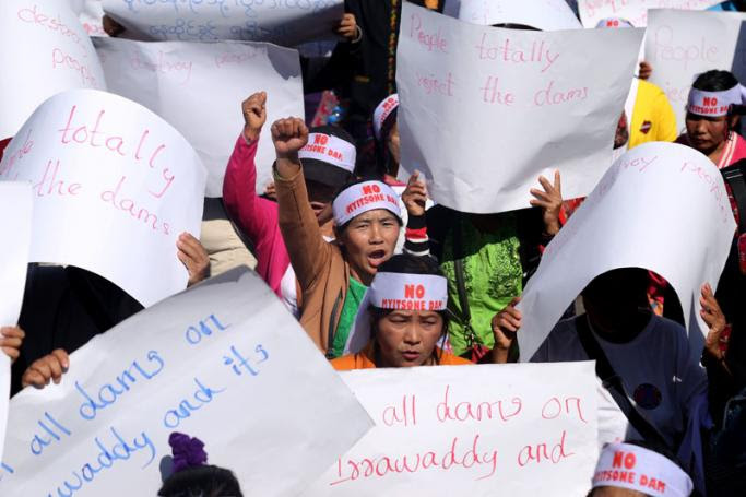 About 10,000 people in northern Myanmar’s Kachin state staged a massive protest Thursday against the controversial Chinese-backed Myitsone Dam and recent calls by China for the suspended project to resume, RFA reported.