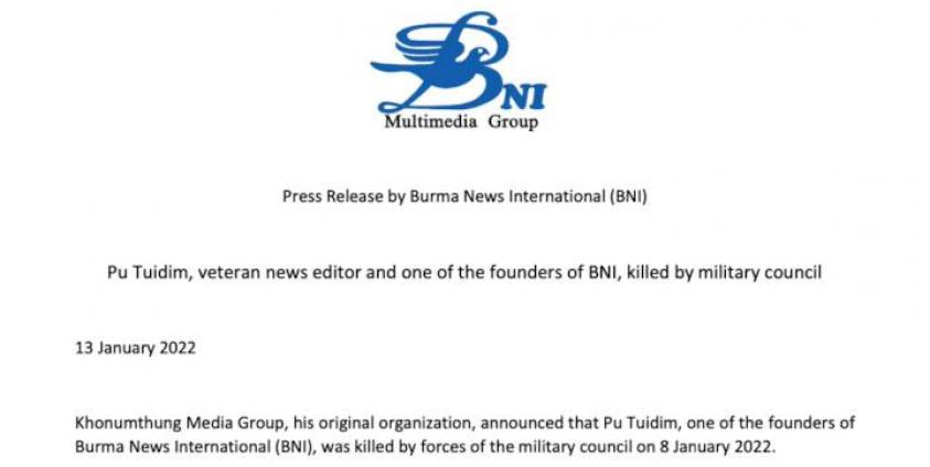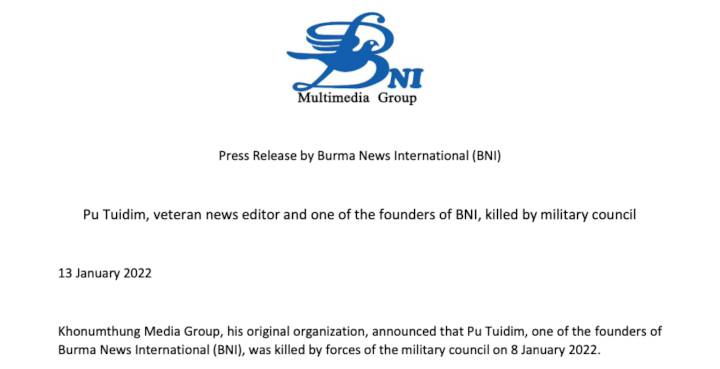 Pu Tuidim, veteran news editor and one of the founders of BNI, killed by military council