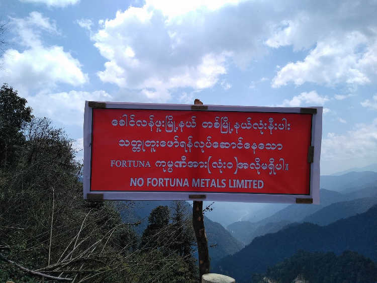A poster opposing Fortuna Metals Company’s mining project in Hkawnglanghpu region, Putao district, northern Kachin State, Burma.