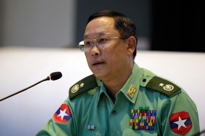 Myanmar's Major General Tun Tun Nyi talks to journalists about the recent conflict in northern Rakhine State, during a press conference at defense services museum in Naypyitaw, Myanmar, 25 March 2019. Photo: Hein Htet/EPA