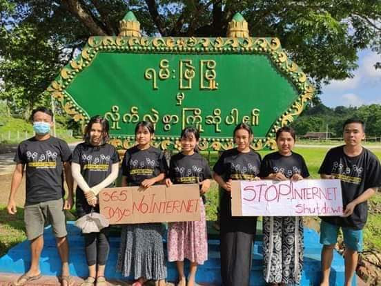 As of June 21 internet services have been suspended for a full year in seven of Rakhine’s townships, and Paletwa township in Chin state. Numerous civil society organisations and social activists from a number of towns and cities across the country, including Sittwe and Yangon, have staged events calling for internet services to be resumed. Many have posted pictures of their protest banners on social media networks.