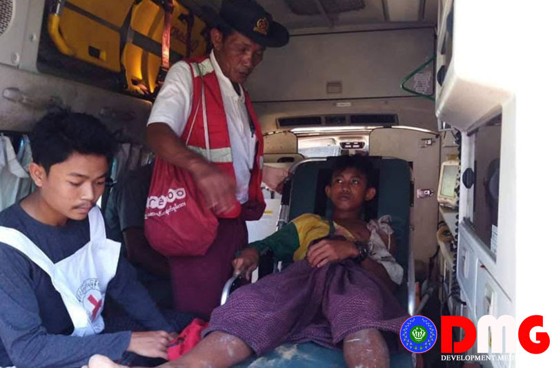 Two people, who were hit and injured by stray bullets from Yay Bote village in Rathedaung township, were sent to hospital on October 28 with the help of the International Committee of the Red Cross (ICRC) in cooperation with Myanmar Red Cross Society (MRCS), U Hla Kyaw, head of Township Red Cross Unit said.