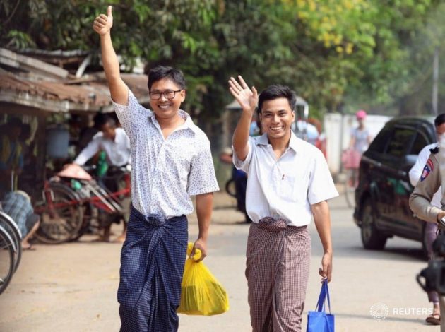 The two Myanmar based Reuters journalists, Wa Lone, 33, and Kyaw Soe Oo, 29, charged under and jailed for breaking the country’s Official Secrets Act were released from prison after spending 500 days behind bars.