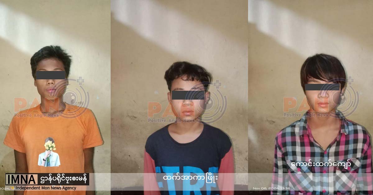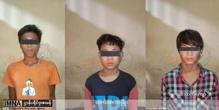 On November 11, three males, including two underage boys, were arrested in Theinzayat town, Kyaikto Township. Two more men traveling by motorcycle from Bilin to Thaton were detained on November 13.
