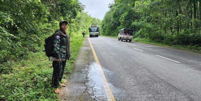 In early July, female soldiers from the Taung Nyo column took charge of inspecting passenger vehicles traveling on No. 8 Union Road in Mon State.
