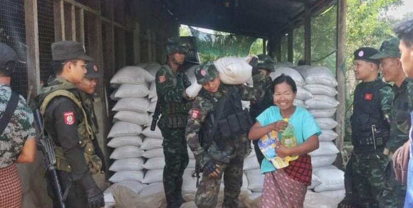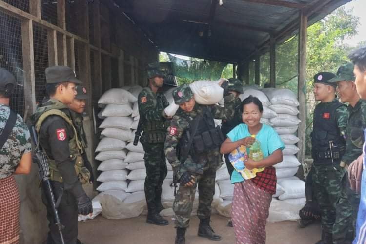 According to an NMSP report, members of the Administrative committee led by the Chair of the NMSP's Ye Chaung Phya township, along with soldiers from the Mon National Liberation Army, helped the villagers carry bags of rice to their homes.