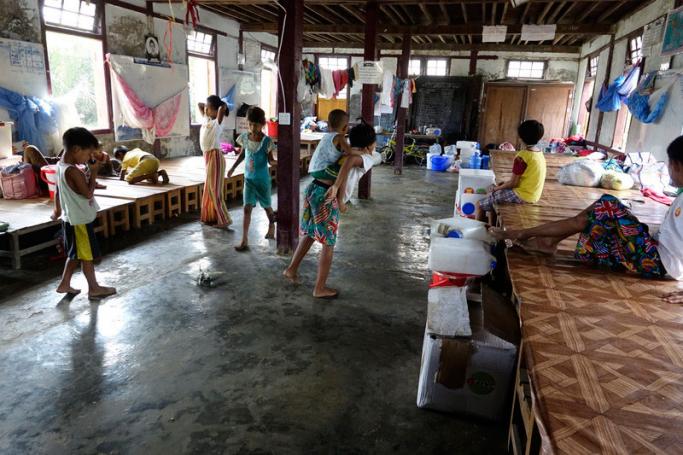 Rakhine ethnic children, who fled from conflict areas, take refuge at A Myo Thar Monastery temporary camp in Sittwe, Rakhine State. Photo: Nyunt Win/EPA