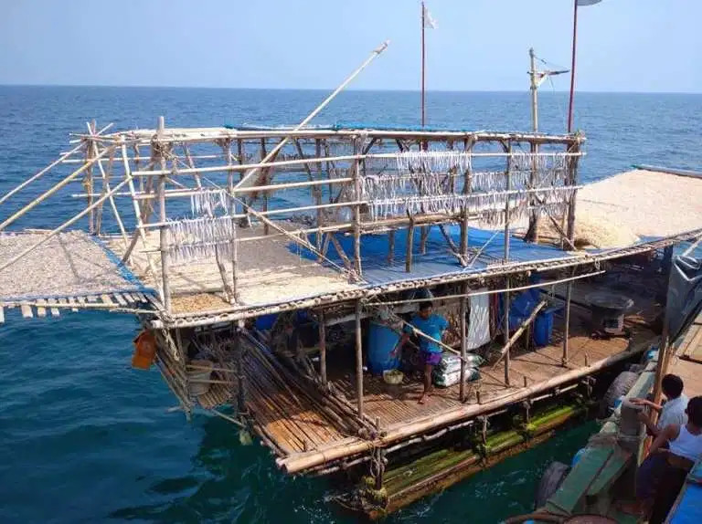 According to the local people, the numbers are much greater. Area residents suggest that about 2000 raft-fishing businesses operate offshore. They are thought to be from Abaw-Kyar-Than, Si Phyu Daung Kyar Than, Asin-Taemin-Sate, and an Andin fishing camp located in Ye Township.