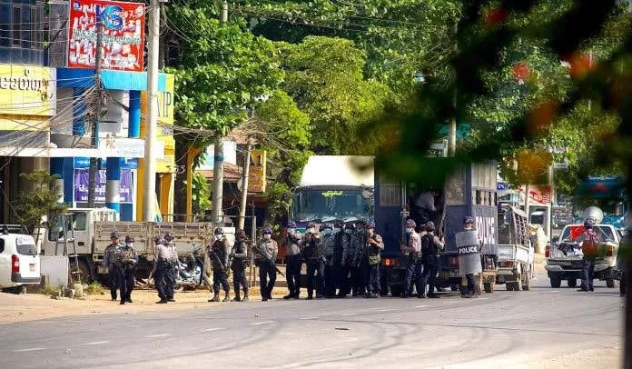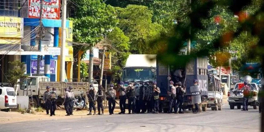 In Mudon Township, members of the military council are using heavy force to patrol the area.