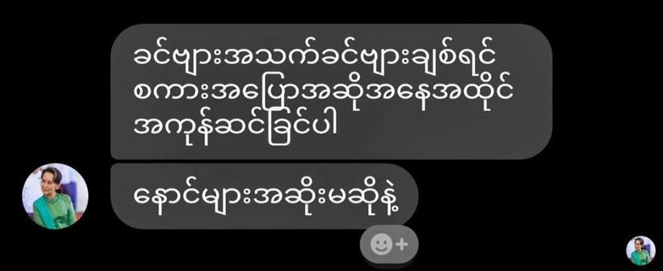 Nang Mwe Lern, a member of the Northern Shan State Students’ Union, said that on Monday evening, someone tried to hack into her account. Her friends have also received messages telling them that “life is cheap in northern Shan State.”
