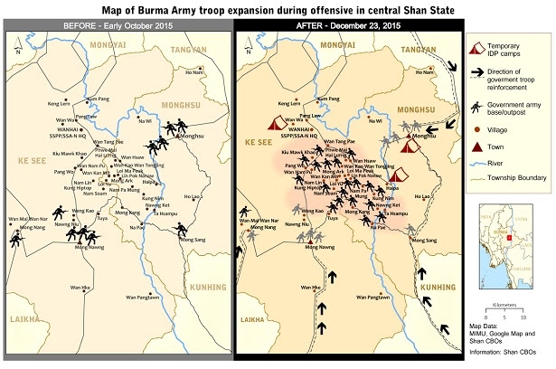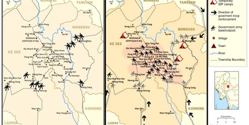 More than 10,000 civilians from Mong Hsu, Mong Nong, and Kesi Townshipsin in Central Shan State have been forced to flee their homes because of fighting in the area between the Burma Army and the Shan State Progress Party/Shan State Army-North (SSPP/SSA-N), which broke out in early October and continued until early December.