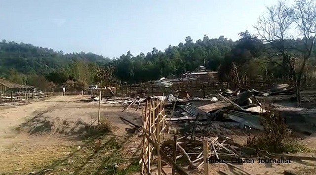 According to local aid workers, 62 homes were burnt down in Hopang Village causing more than 300 people to flee the village. These displaced villagers are now staying in the Wongwee sub-township of Namkham.