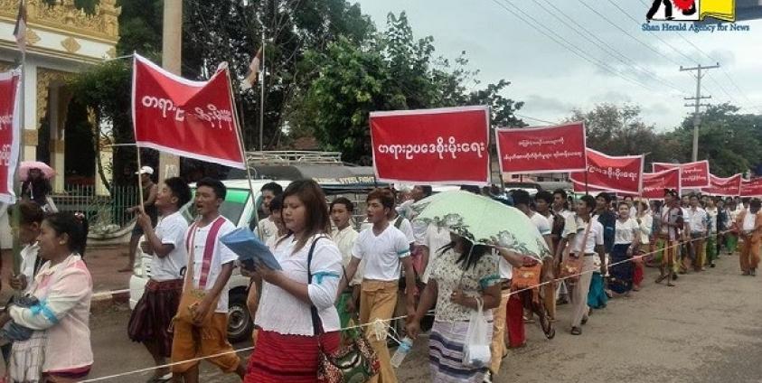 According to Sai Pha Seng, who was present at the event, the demonstration started at 9am, and included participants from Lashio, Kutkhai, Hsenwi, Tangyan, Mongyai, Kyaukme and Hsipaw townships, The peaceful protest was conducted through the streets of Lashio city.