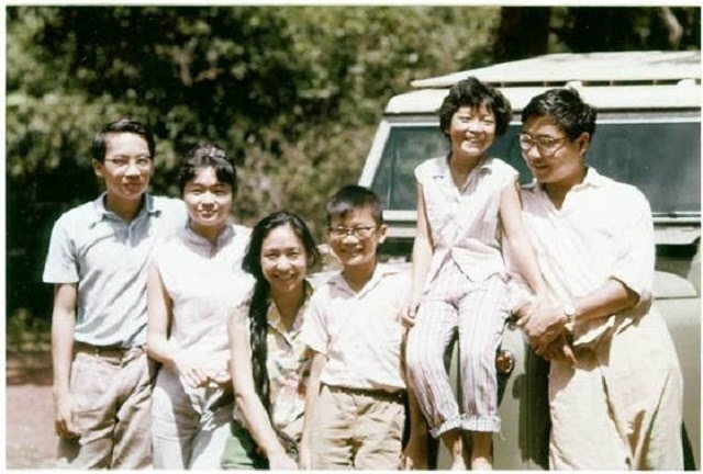 In Beijing in 1957 with Mao Zedong. Tiger Yawnghwe in the back row, second from the left. Brother Harn Yawnghwe in the Chinese coat in the back row, first from left. Father Sao Shwe Thaik and mother Sao Nang Hearn Khamare stand left of Mao in the centre.(Harn Yawnghwe)