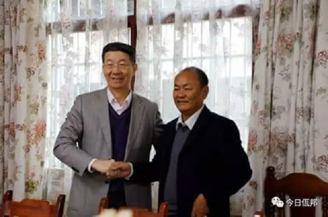 China’s special representative for Burma, Sun Gunxiang (left) and Bao Youxiang, the leader of the United Wa State Army (UWSA) (right).
