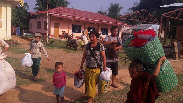 Photo by Tai Tiger- Villagers were fleeing their homes to Namtu town on May 11.