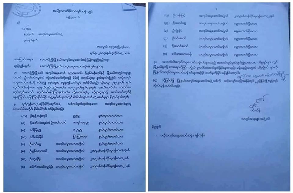 “The order didn’t come from the Central Executive Committee (CEC) at the Shwegondaing headquarters [in Yangon]. It came from Nay Pyi Taw. U Win Htein is only keeping on the people who get along with him and is kicking out all the people who don’t work easily with him. He is trying to replace them with his men,” said U Maung Maung.