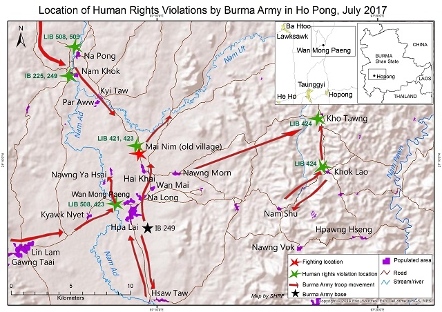 In a detailed eight-page report, SHRF documented that a litany of human right violations were committed by soldiers belonging to the following Burmese military battalions: Light Infantry Battalion (LIB) 508; LIB 509 of Light Infantry Division 55 (Ba Htoo Base); LIB 423; LIB 424 of Military Operations Command 7 (Hsihseng Base); IB 225 from Triangle Military Command (Kengtung Base); and IB 249 from Eastern Military Command (Taunggyi Base).