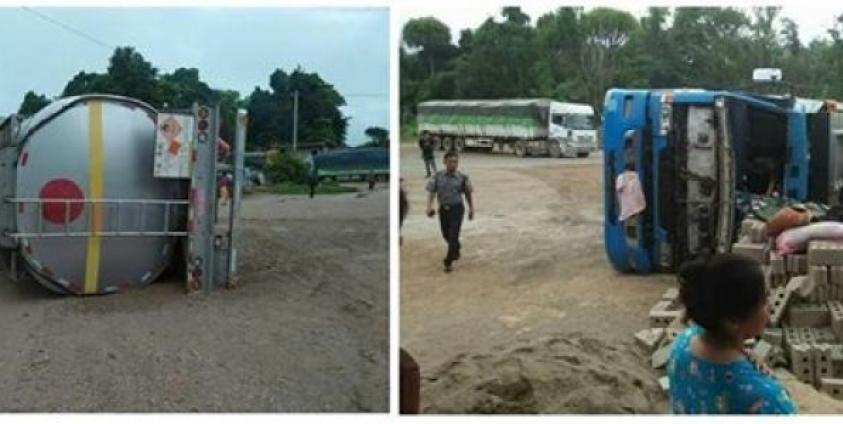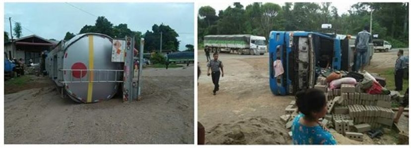 On September 13, a motorcycle crashed into a parked 12-wheel truck in front of a high school in Wein Sein Ward in Hsipaw township at around 8pm. The motorcycle driver sustained a gash on his neck and was transported to the hospital in critical condition. The passenger on back was injured on her forehead.