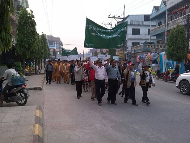 People needed to take part in demonstration marches whilst holding placards on 6 April in Linkhe, Loilem, Kunhein, and Taunggyi towns in Southern Shan State, Lashio, Muse, and Kyaukme towns in Northern Shan State, and Tachileik, Kyaington, and Mongsat-Mongton towns in Eastern Shan State said local residents who had been told to take part in the demonstrations.