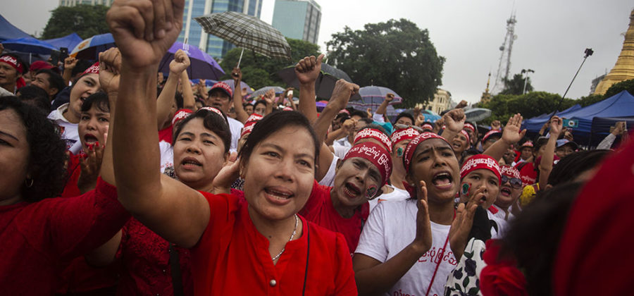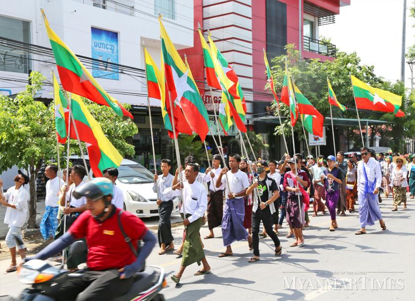 People protest against charter amendments in Mandalay on Wednesday. Kyaw Ko Ko/The Myanmar Times