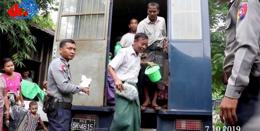 Six men from Kyauktan village in Rathedaung Township who have been detained and accused of involvement with the Arakan Army appeared in the Sittwe district court on 7 October.