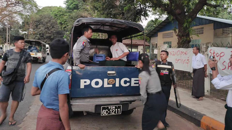 Five students were arrested on March 5 and charged under the Peaceful Assembly Law at the Kamayut court along with one other, Police Major Thein Han, head of Kamayut Police Station, told DMG. They were previously detained for questioning on February 24, one day after the protest in Yangon, but were subsequently released pending a formal arraignment.