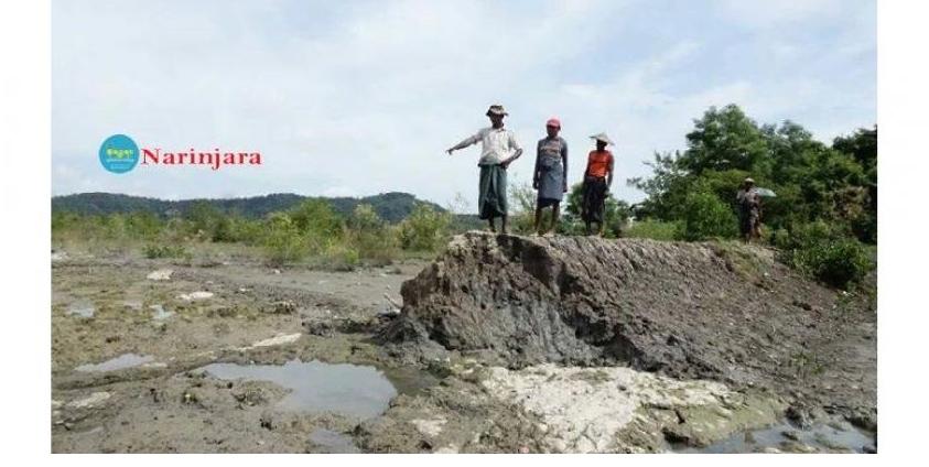 Sixty acres of paddy fields have been damaged by the entry of seawater after an embankment broke in Taung Shay Village of Wah Taung Group in Kyaukpyu Township, Rakhine State, causing difficulties among the local farmers, farmers from Taung Shay Village said to Narinjara News.