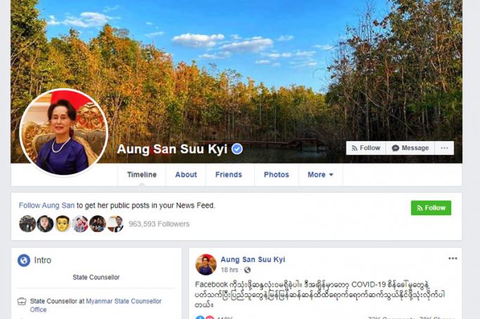 Chit Min Tun — In her Facebook post, State Counsellor Aung San Suu Kyi said that she used Facebook for quick and effective contact with people in prevention of the COVID-19 virus which causes severe acute respiratory syndrome disease.