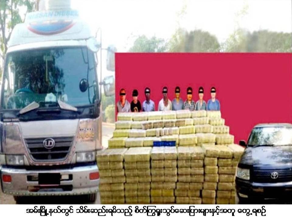 Later the police arrested Kyaw Min Thein (alias Thein Shwe), Htet Wai Yan, Hla Aung Zan, Nan Aung Lin, Moe Chae and Moe Kyaw along with a vehicle at around 11:30 pm in Mrauk-U locality. The arrested individuals are suspected to be involved with the seized drugs.