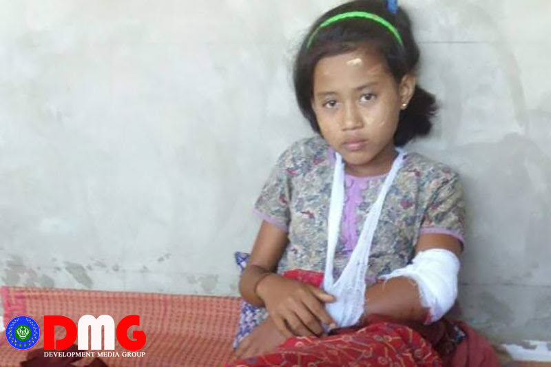 There was a three-hour long battle near Ma Nyin Taung village, about a mile from Kyauk Yan village, on 30 October morning. A stray bullet from the fighting hit Ma Hnin Chay, a 13-year-old student in her left arm.