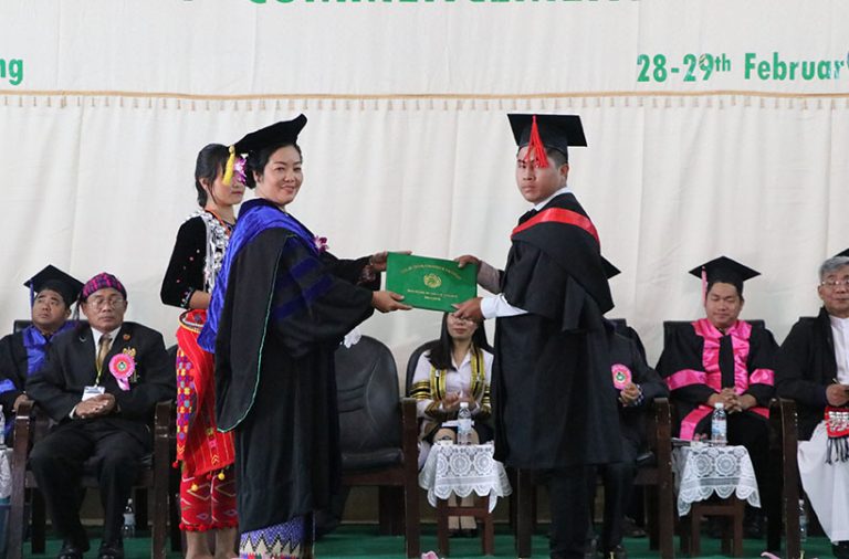 “This is the first graduation in our college. For me, it’s a historic moment. I am so proud of myself and I feel so happy,” Bawk Hkawng, who graduated with a Bachelor of Arts degree in Politics, told NMG.