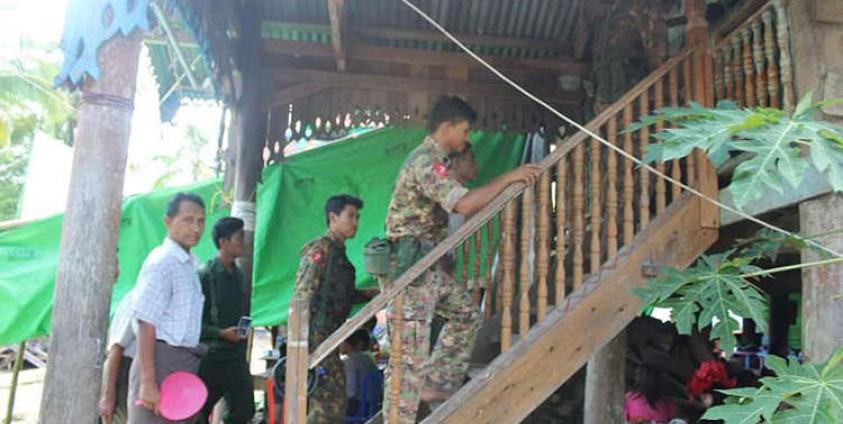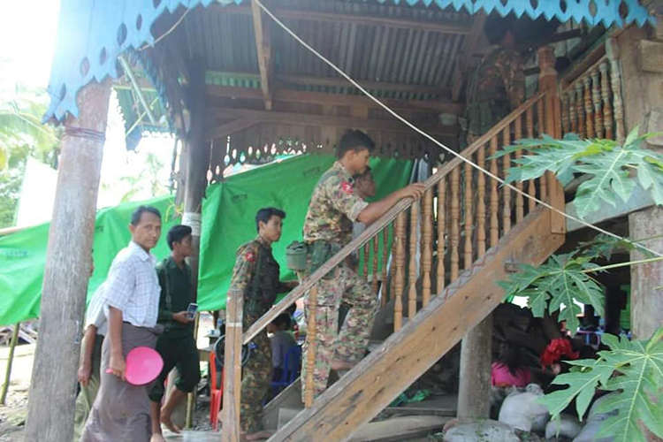 A military troop with about 50 soldiers has been granted permission to inspect a refugee camp open at the monastery in Ponnagyun Township’s Pauk Taw Byin village to see if members of the AA are residing in the camp on 11 June.