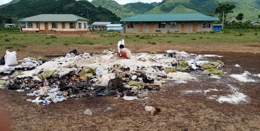 Tatmadaw soldiers set fire to a convoy carrying urgently needed food and medicine for villagers displaced by fighting in southern Shan State.