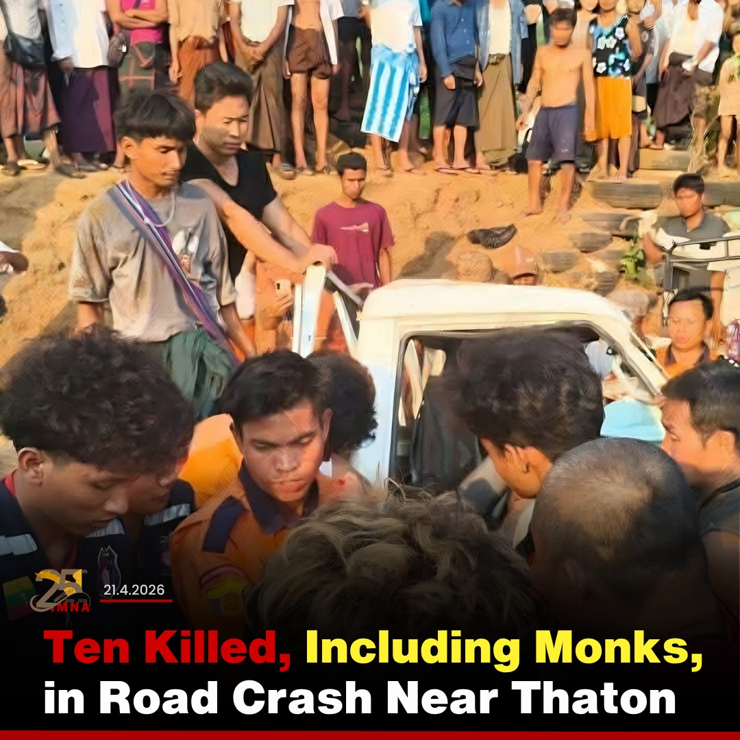 Ten people, including Buddhist monks, were killed in a road accident near Naung Bo village in Thaton Township, Mon State, on April 18, according to local residents and rescue teams.