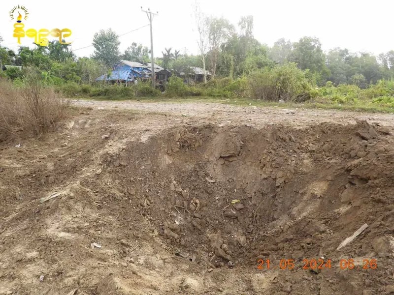 On May 19, at approximately 10:00 am, a jet fighter dropped three bombs on Tharay Konbaung village in southern Maungdaw. This attack resulted in the injury of two residents and the destruction of five houses, including a rural clinic.