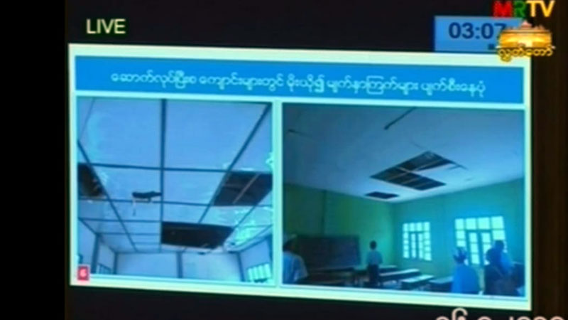 Lawmaker U Min Kyi asked about the plan to oversee tender winners to meet required qualities of the buildings.