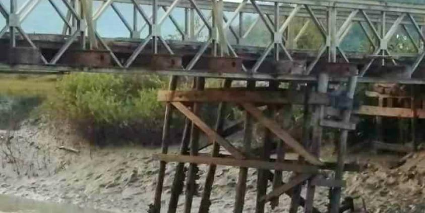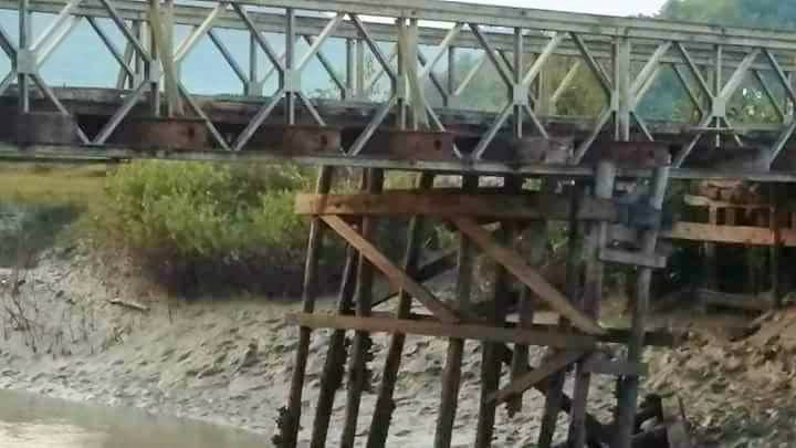 The Tharyargone Bridge on the road connecting Minbya and Myebon in the Rakhine State is in danger of collapsing due to damages in the pillars, according to a report and photo circulating on social media.