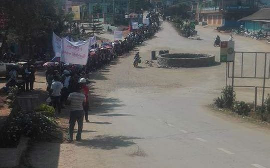 Carrying placards and vinyl posters demanding that the government reverse its decision, nearly 3,500 protestors set out from the eight-road junction in Matupi at 9:30am and marched to the Hakha-Mindat Junction Road via General Aung San Road before returning to their starting point.