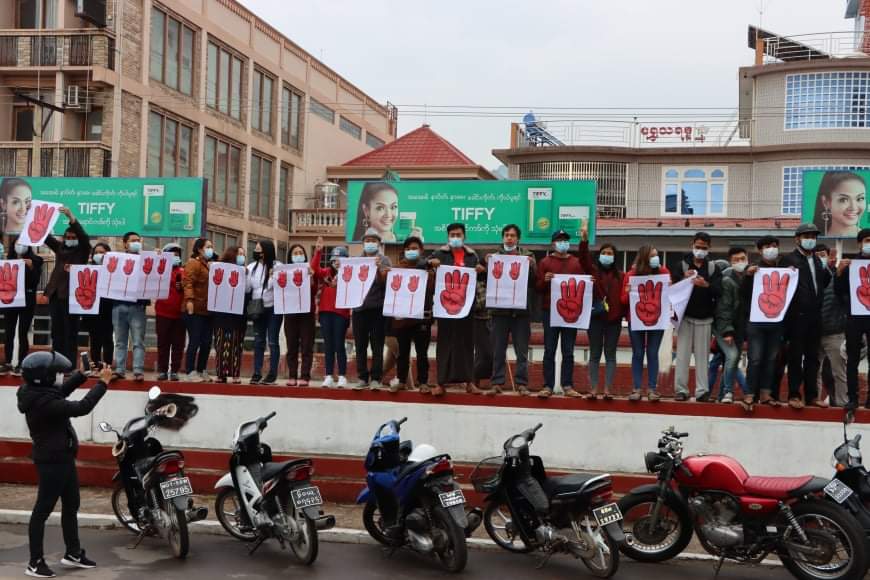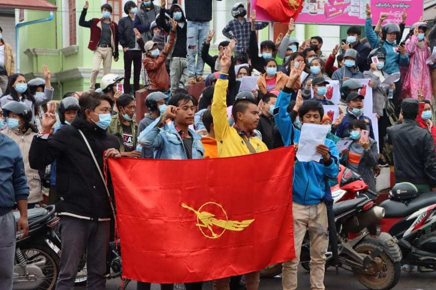 Over 10,000 people staged a protest against the military coup in Taunggyi in southern Shan State on the evening of February 7th.as demonstrations engulfed all parts of the country making it the biggest nationwide protests since the 2007 ‘Saffron revolution’.