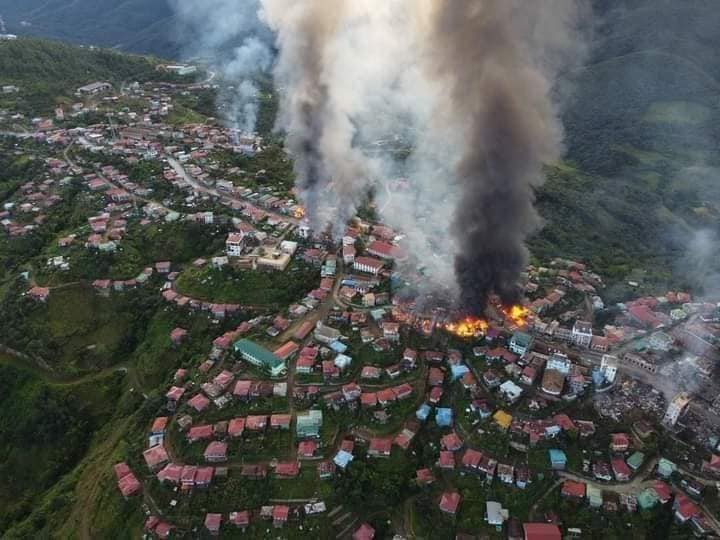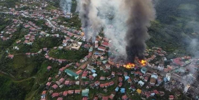 More than 160 houses and two Christian churches in Thantlang were destroyed by fire caused by the shelling on October 29.