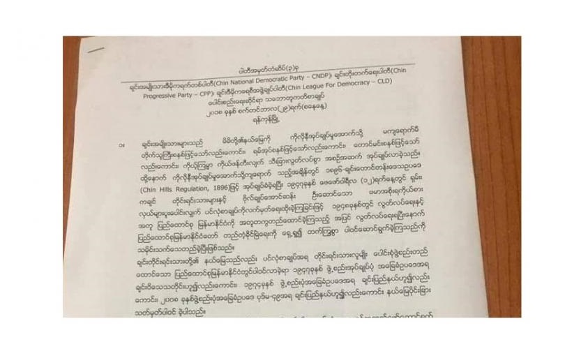 The three parties which will sign the merger are the Chin National Democratic Party (CNDP), the Chin Progressive Party (CPP), and the Chin League for Democracy (CLD).